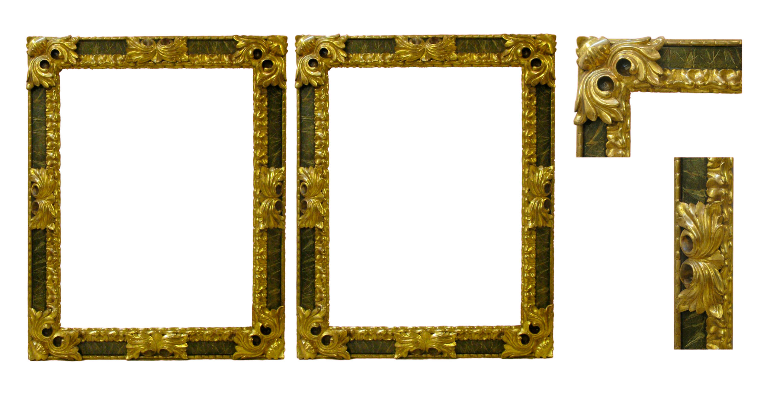 Пара барочных рам из позолоченной резьбы с мелким золотом и зеленым фоном. XIX век