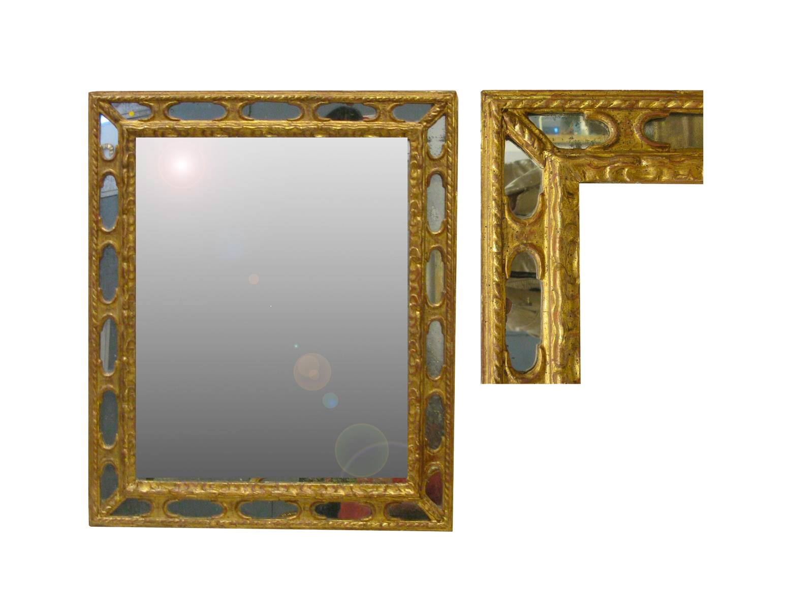 Золотая рама с мелким золотом и окружена 22 зеркалами. Италия, XVIII век.