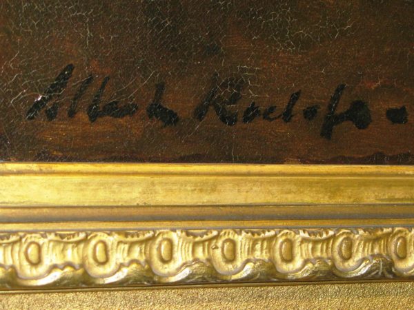 Масло на ткани: Леди и Рыцарь, сидя на диване, рядом с комодом. Fdo. Альберт Рулофс (1877-1920)