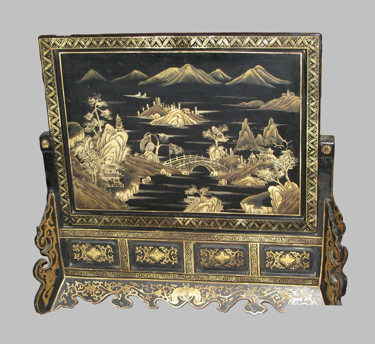 Они парафированные китайские лакированные древесины с рисунками из золота. Пейзажи. Две части. С.XIX.