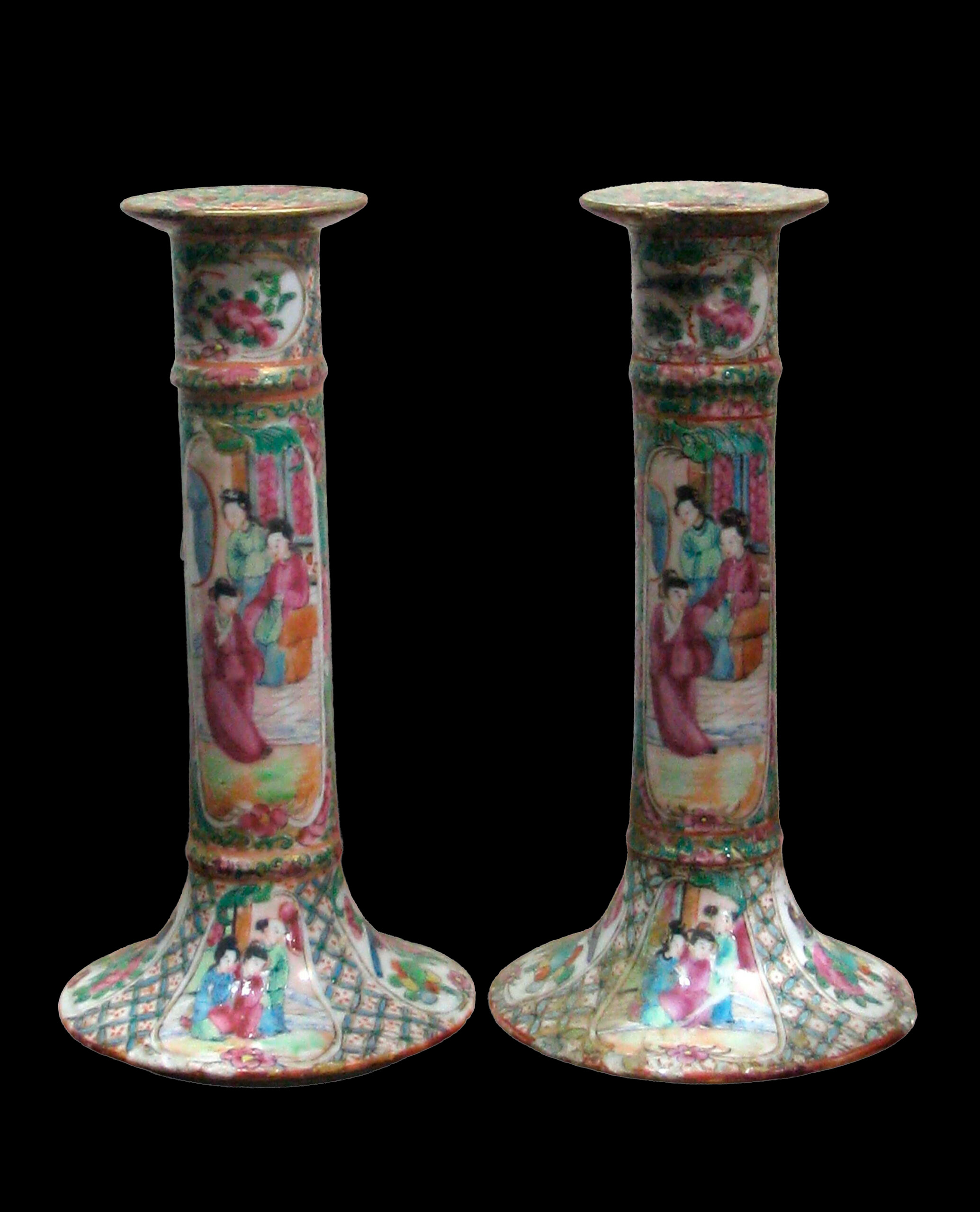 Пара Канделерос керамический кантон. Китай. XVIII век.