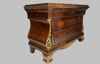 Удобная империя розового дерева и джакаранда с тремя ящиками и золотыми лепнинами для резьбы. 1812-830.