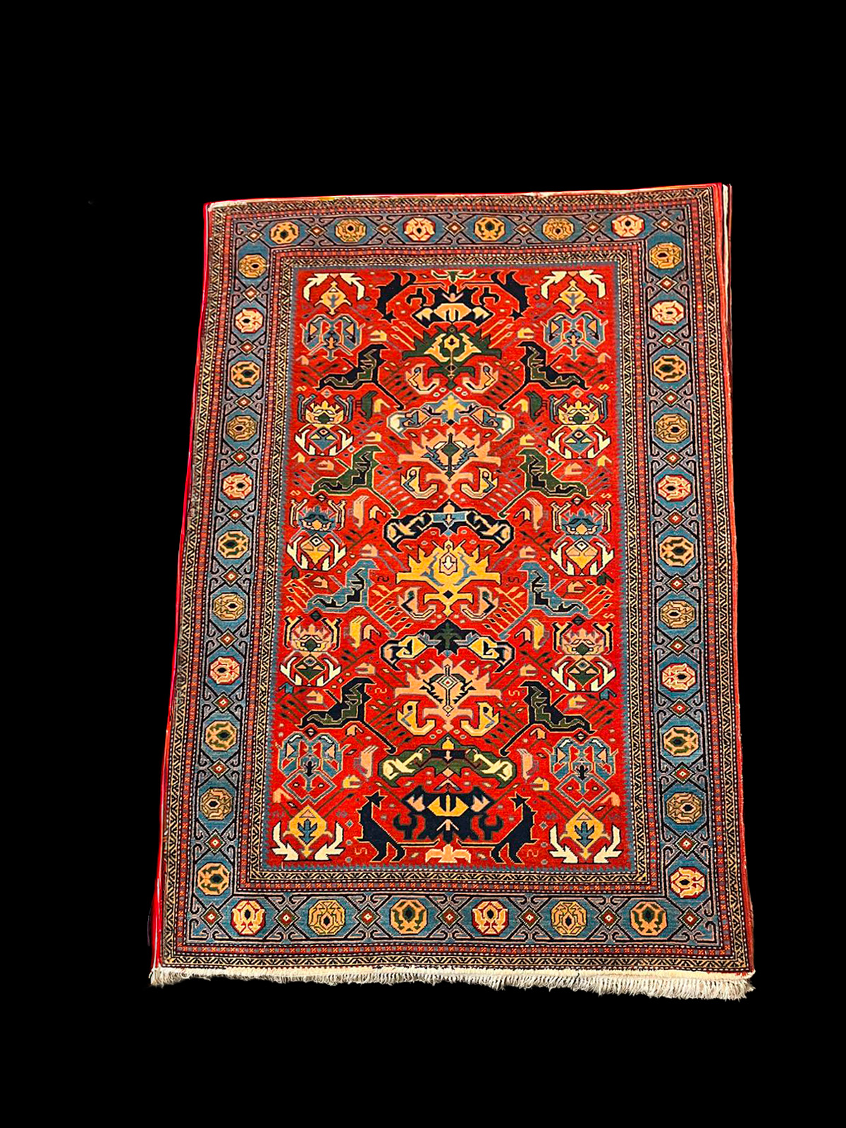 Alfombra antigua de la región de Shirvan (Cáucaso), una pieza que refleja la riqueza cultural y la tradición textil de las antiguas zonas de Azerbaiyán, reconocida por sus diseños geométricos y simbólicos.