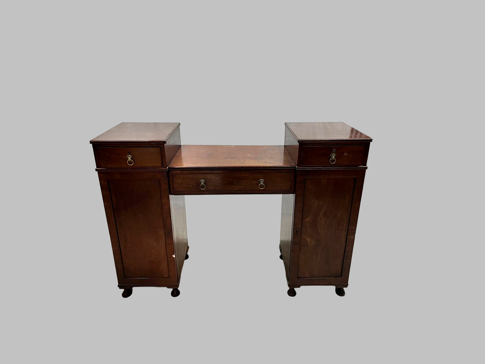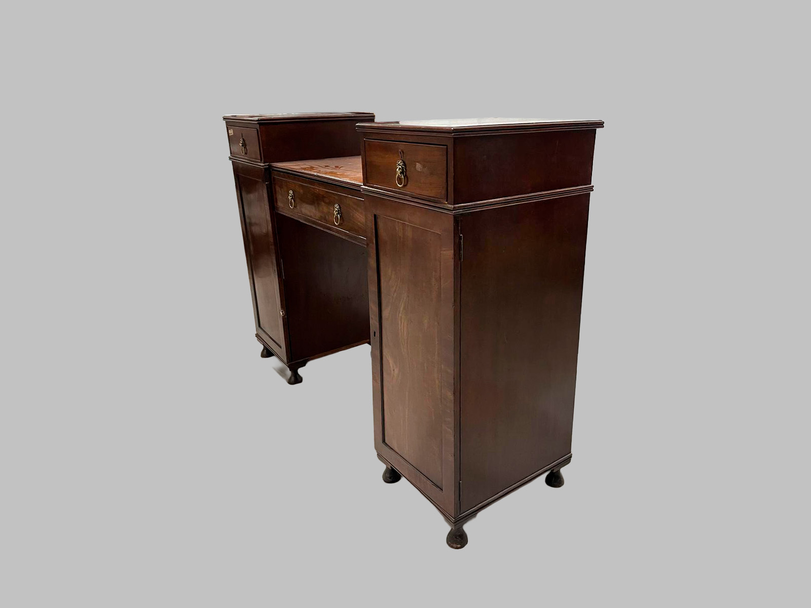 La pieza se estructura en tres cuerpos, ofreciendo una excelente capacidad de almacenamiento junto a un diseño proporcionado y armónico. La caoba, madera noble de gran calidad, aporta resistencia, durabilidad y una cálida tonalidad, realzando la belleza natural de la veta y la elegancia del conjunto.