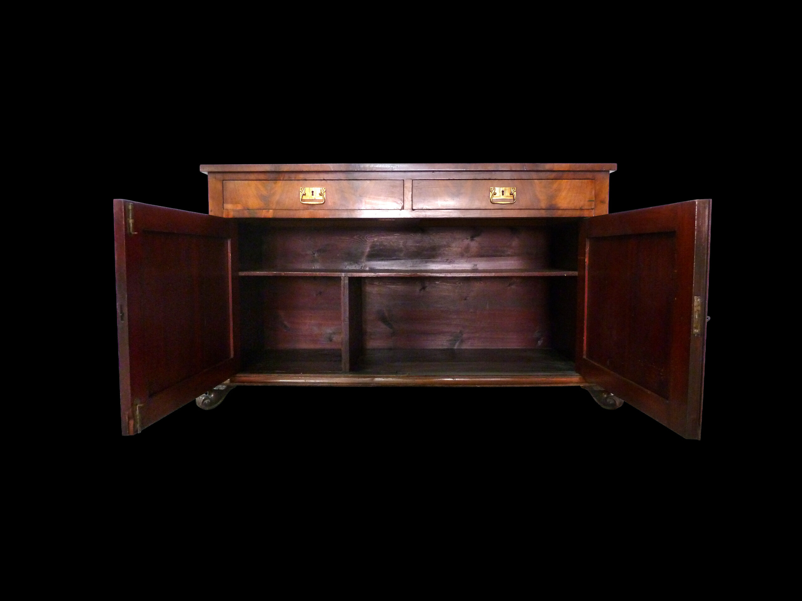 Aparador de estilo victoriano, realizado en caoba maciza, datado en el siglo XIX, una pieza que combina funcionalidad, robustez y refinamiento decorativo propio del mobiliario británico de la época.