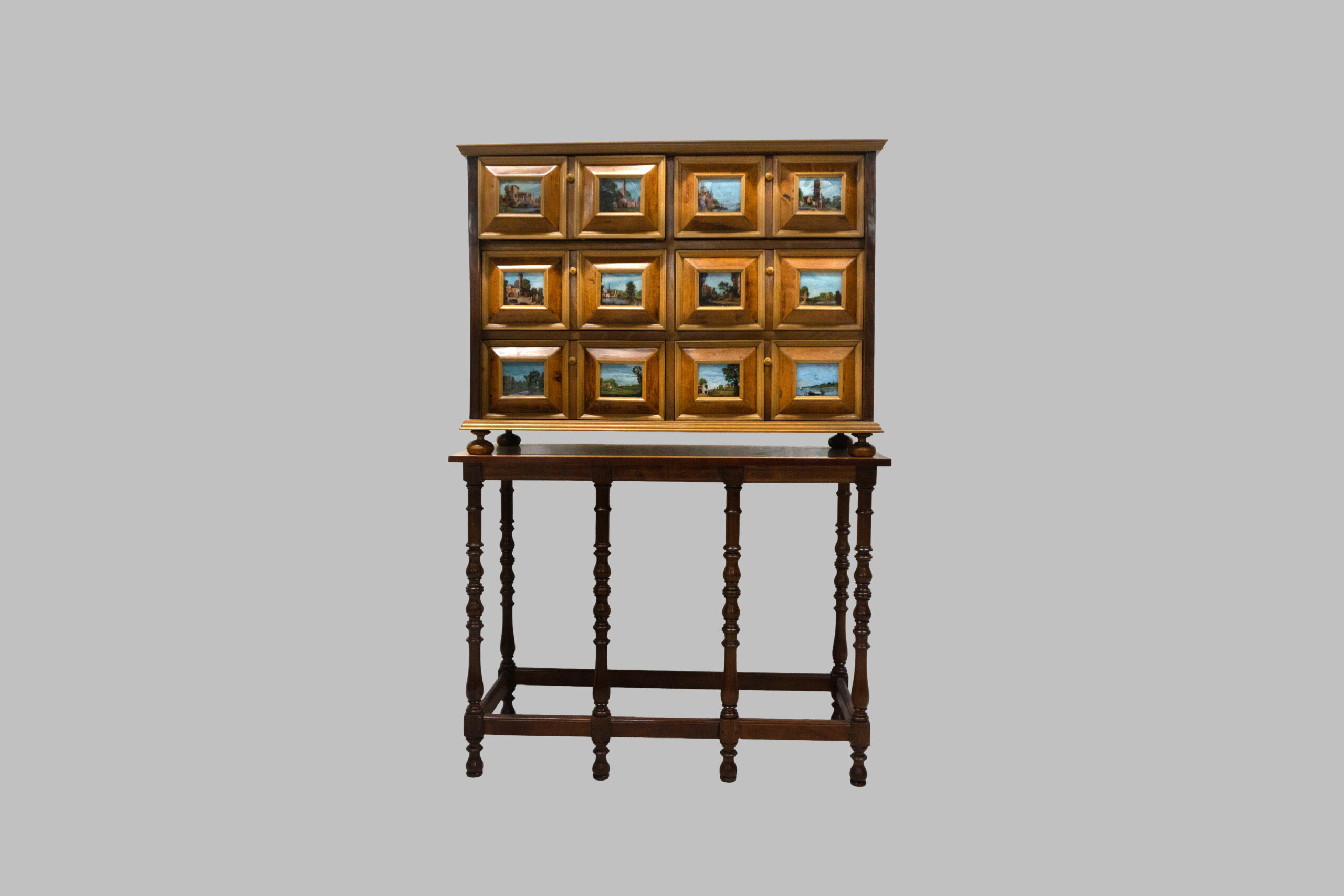 Arquilla de origen florentino, realizada en limoncillo y nogal y datada en el siglo XVIII, que destaca por su elegancia, verticalidad y refinamiento decorativo propio del mobiliario italiano de época.