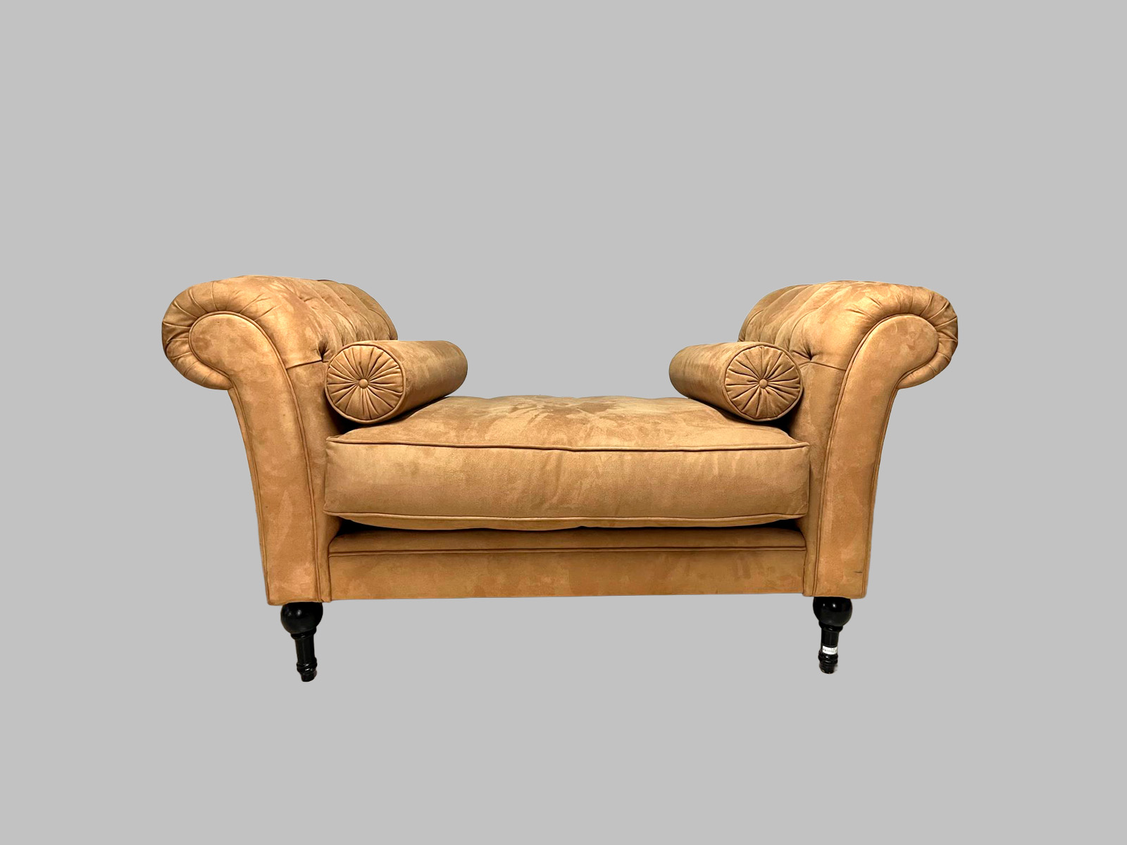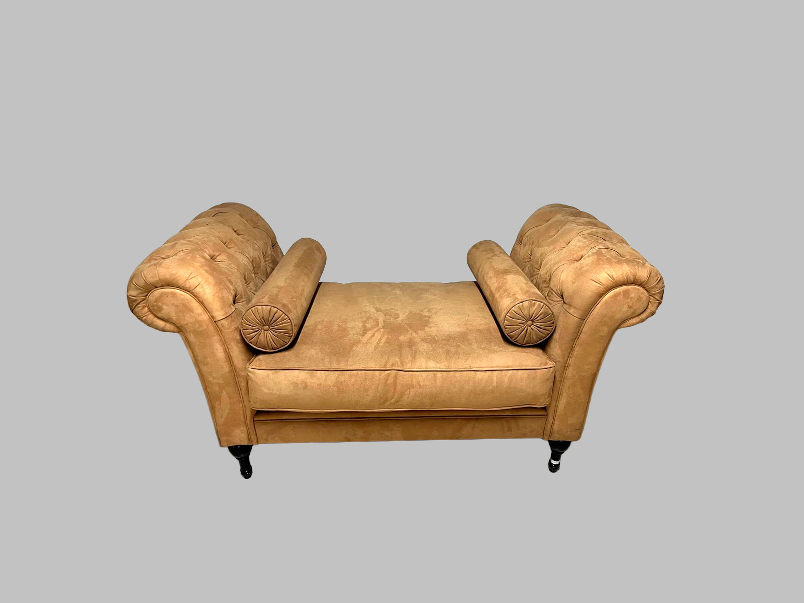 El tapizado en alcántara aporta una textura suave, agradable al tacto y de gran resistencia, ofreciendo un acabado moderno y de alta calidad. Su tono beige facilita la integración en diferentes estilos decorativos, aportando luminosidad y calidez al espacio.