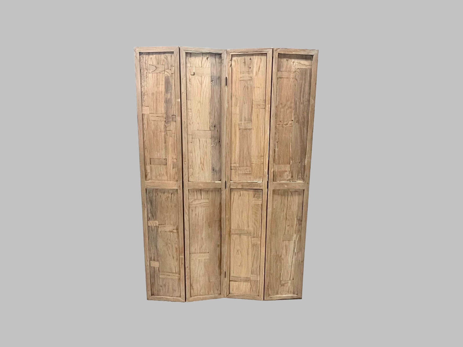 Biombo realizado en madera de iroko, con acabado lacado, que destaca por su funcionalidad y estética contemporánea con carácter natural.