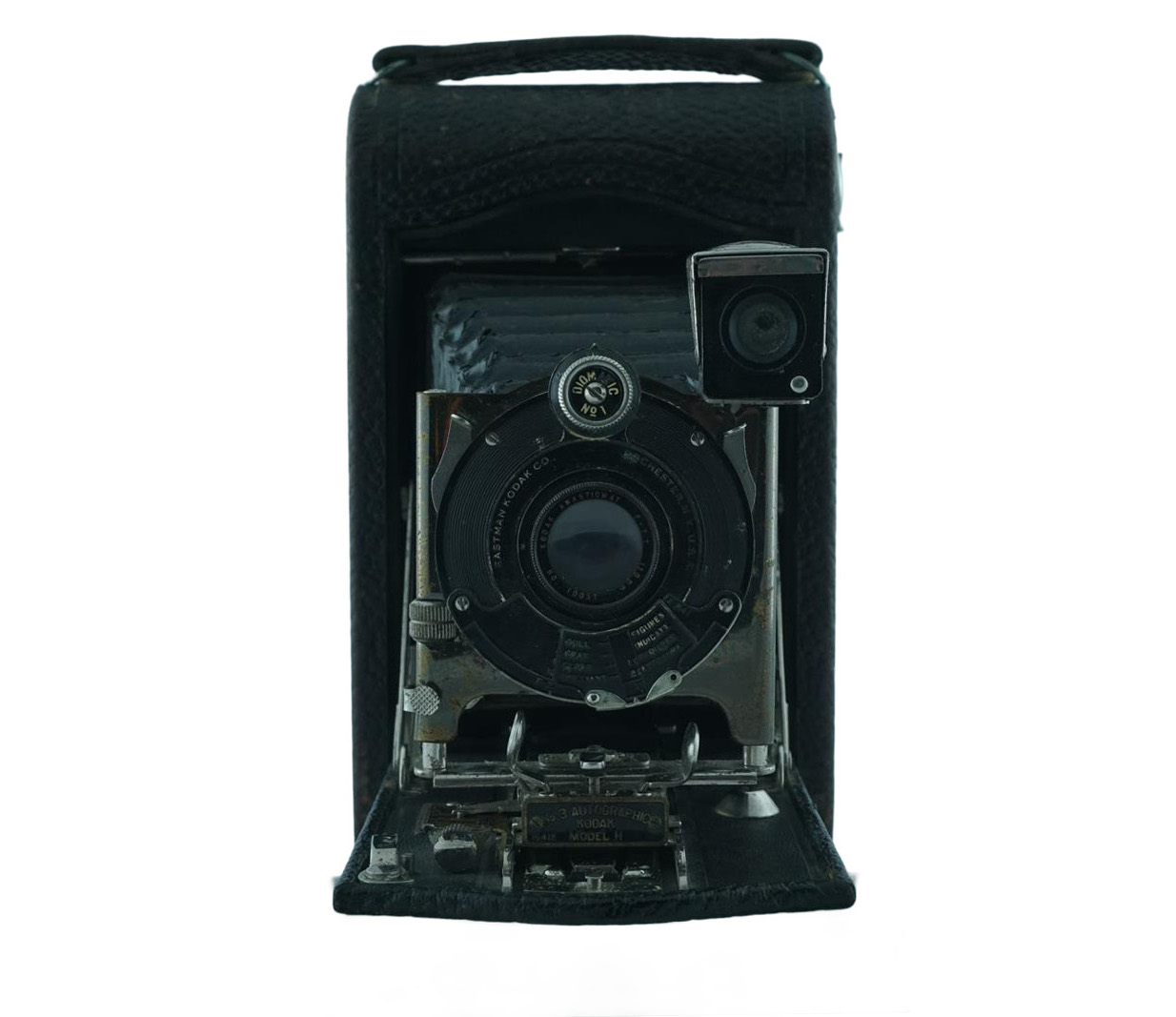 Cámara Fotográfica Vintage plegable de fuelle «Kodak» Nº 3 Autographic modelo H, la primera cámara hecha con «coupled rangefinder» (telemetro acoplado). C. 1920