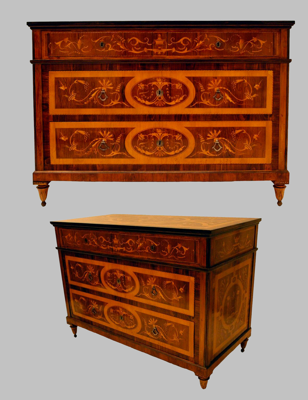Исключительный удобный Карлос IV из грецкого ореха, розового дерева, палорросы, вишни и лемонграсса, с 2 ящиками oeque’o, 2 больших и серебряных оборудования. Мадрид, 1780.