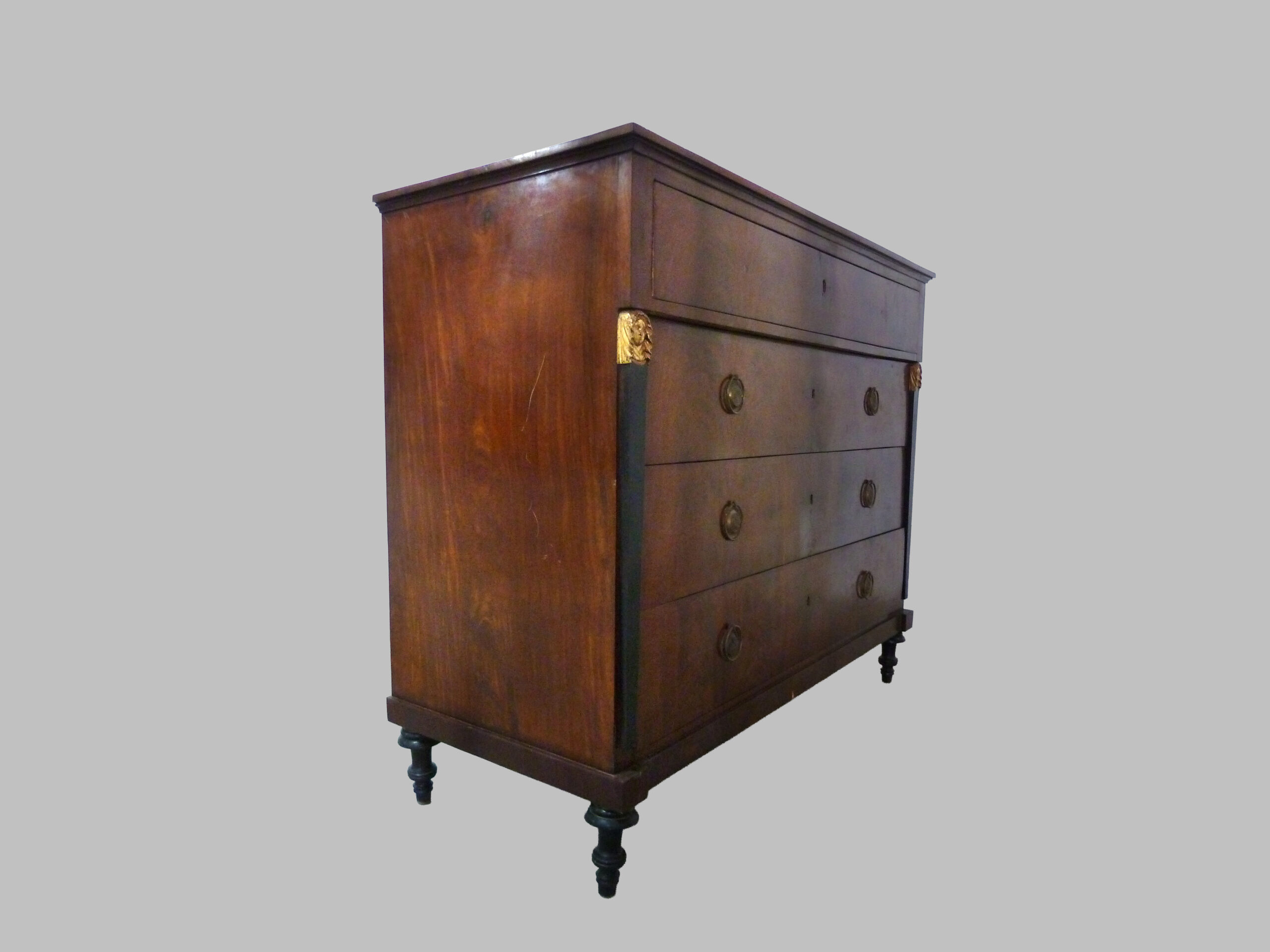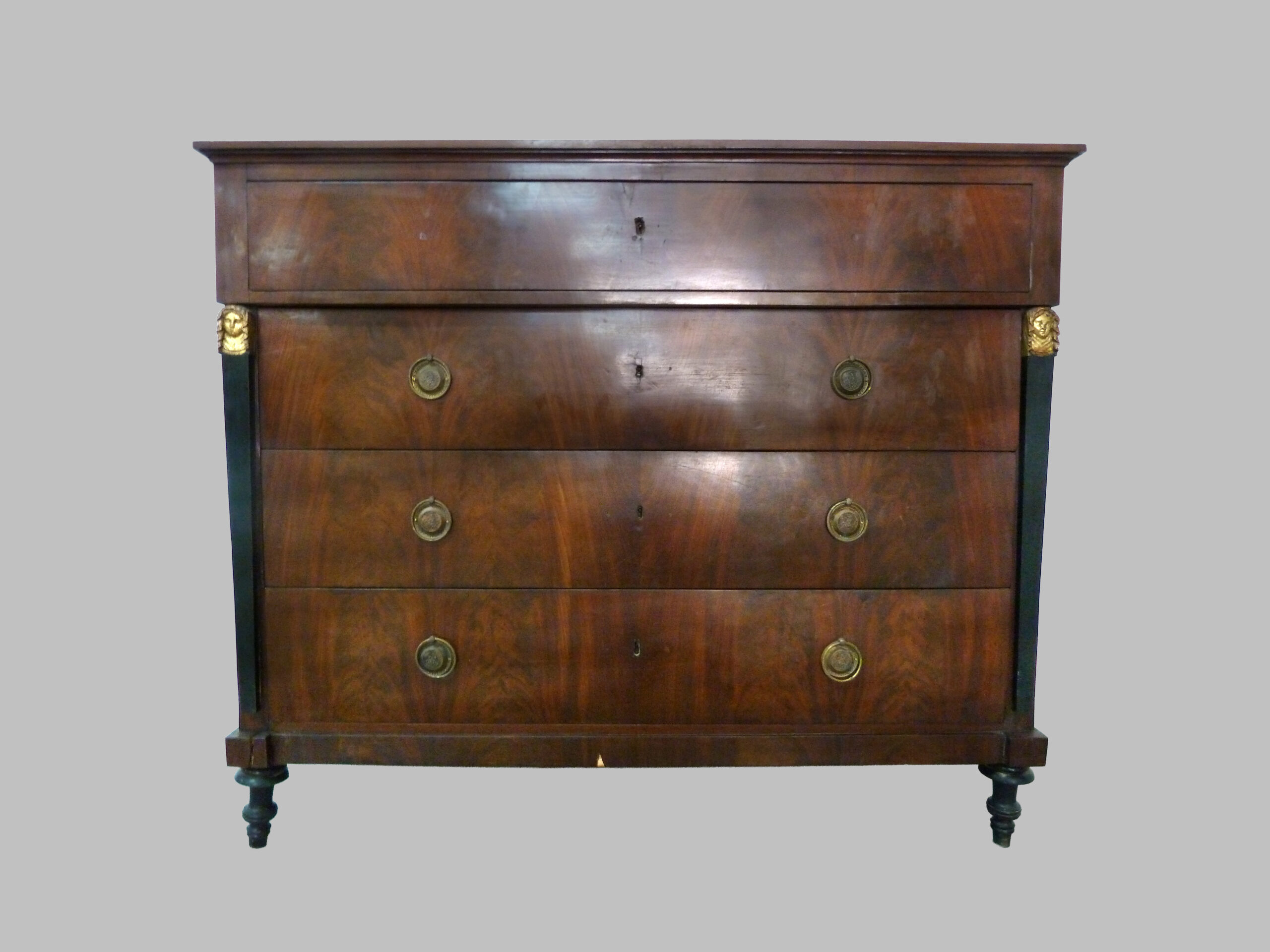 Cómoda de estilo Imperio, una pieza de gran presencia que refleja la influencia del clasicismo en el mobiliario europeo de principios del siglo XIX.