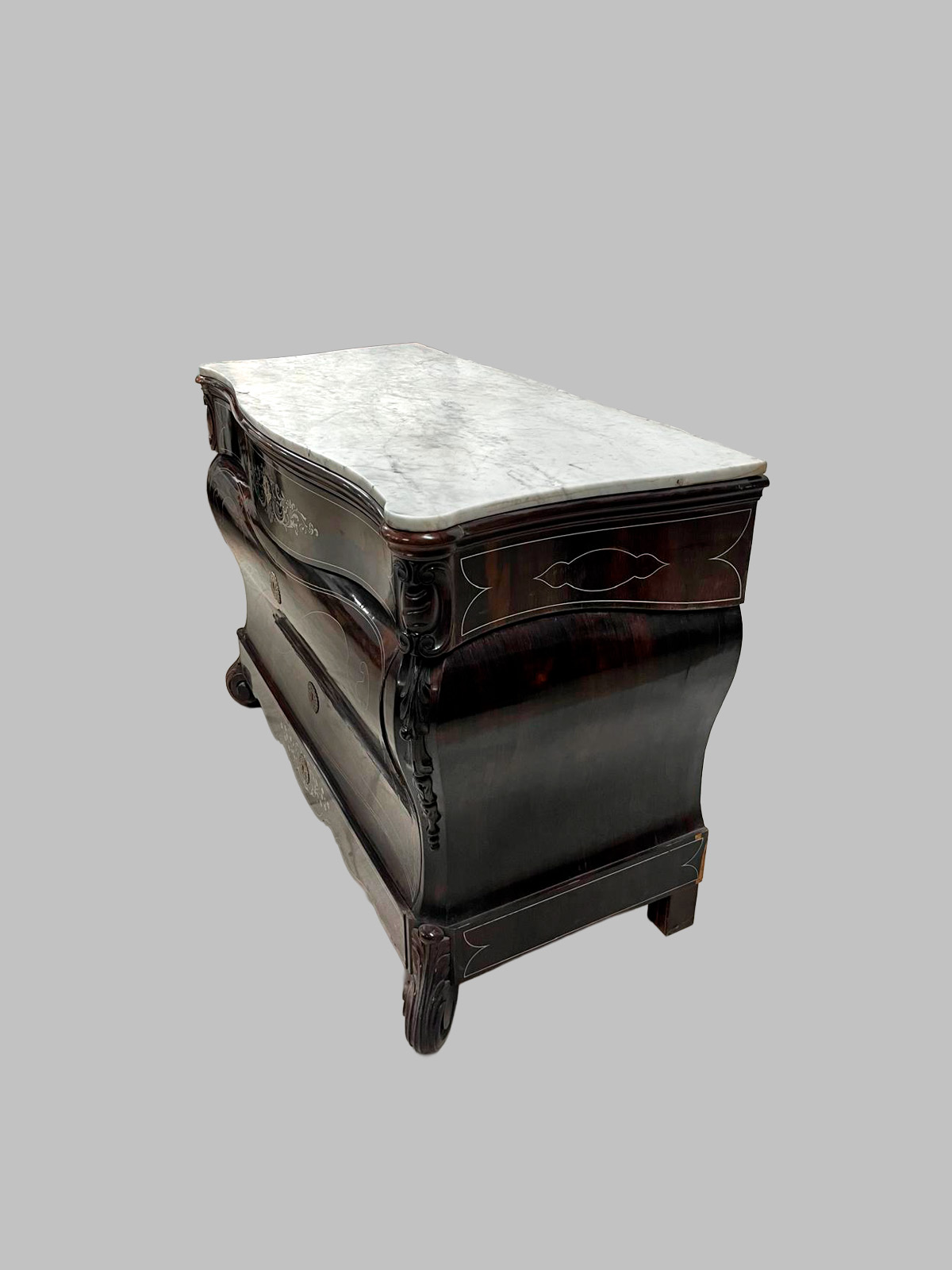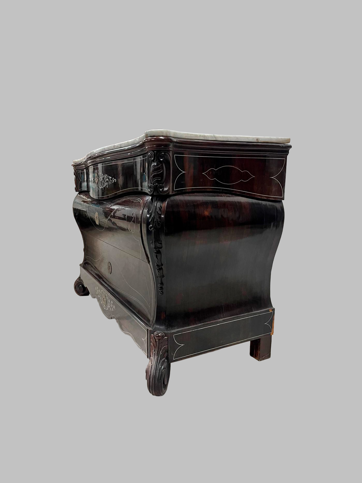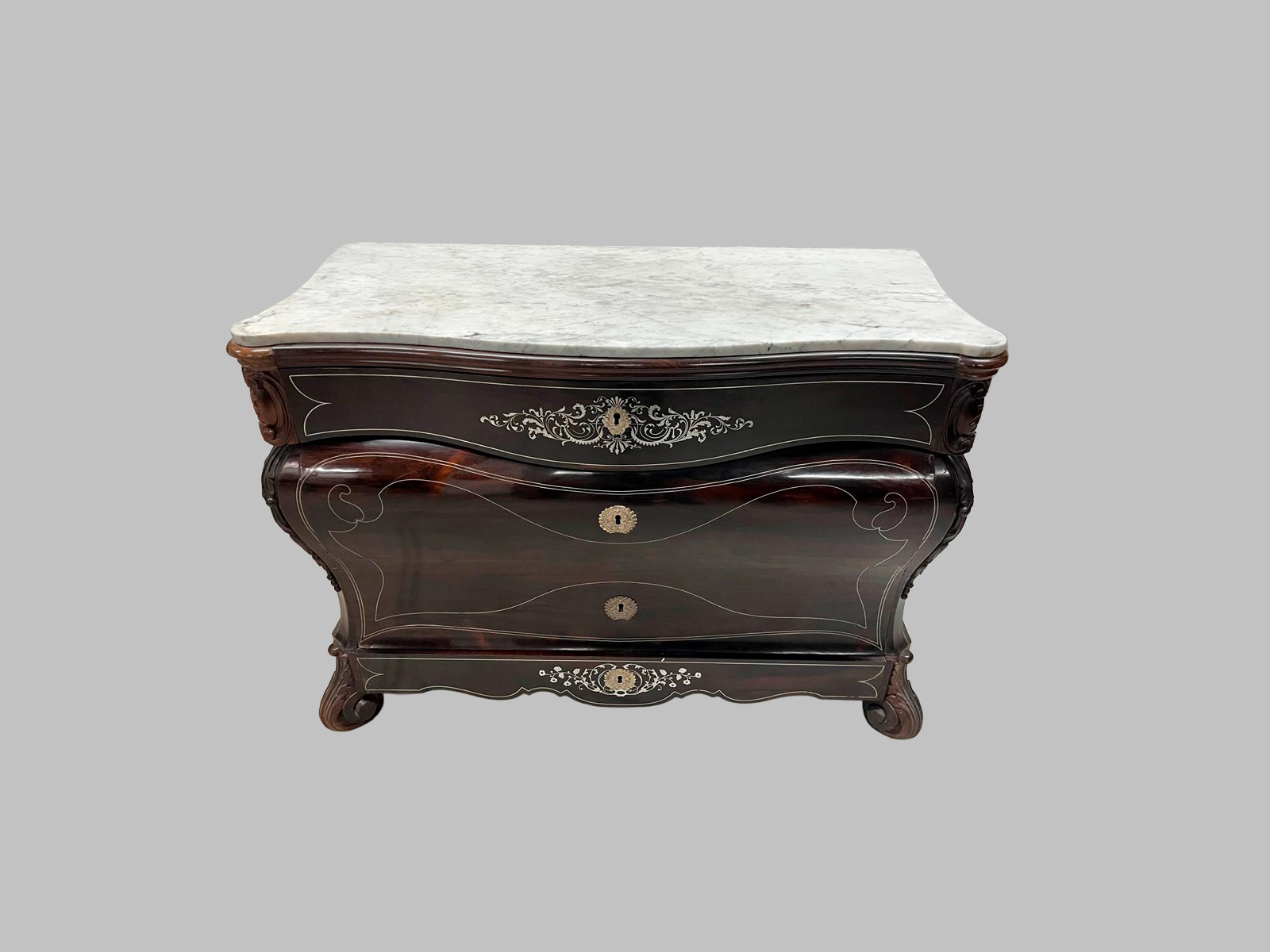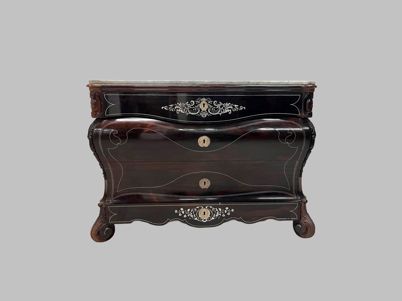 Cómoda Isabelina Abombada con Mármol – Marquetería de Zinc