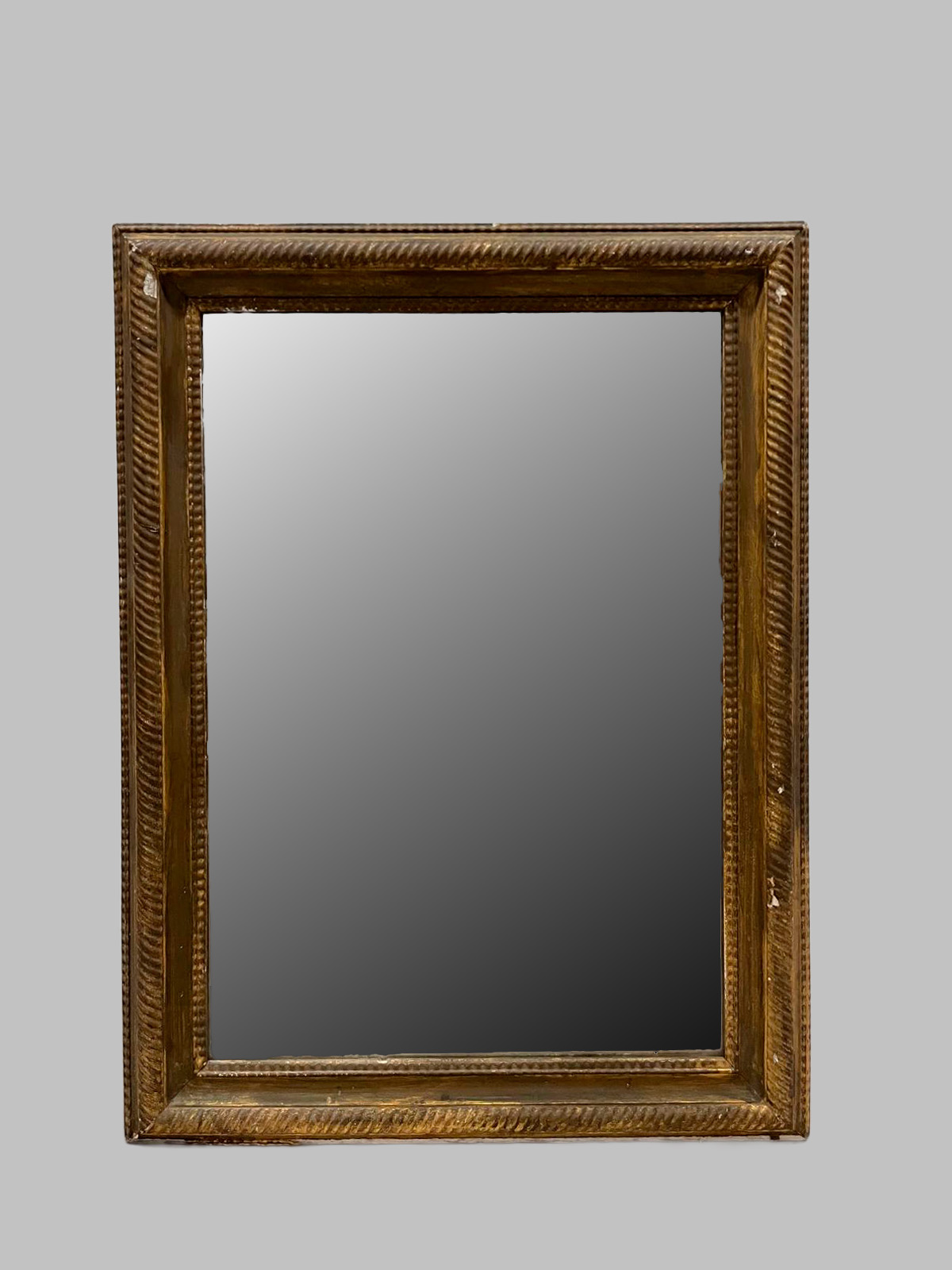 La talla en espiga confiere al marco un ritmo decorativo sofisticado y dinámico, mientras que el dorado en oro fino realza cada detalle con un brillo cálido y distinguido, característico de las piezas de alta calidad de la época.