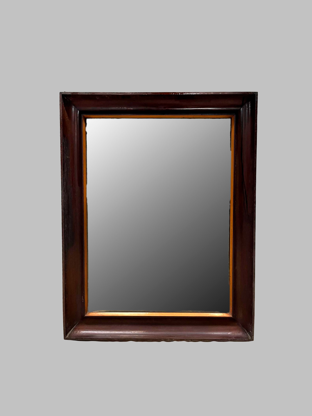 Espejo de estilo isabelino, realizado en caoba maciza con un distintivo perfil abombado, y decorado con moldura de limoncillo que aporta contraste y sofisticación. Datado en el siglo XIX, esta pieza refleja la maestría artesanal y la estética refinada del mobiliario isabelino.