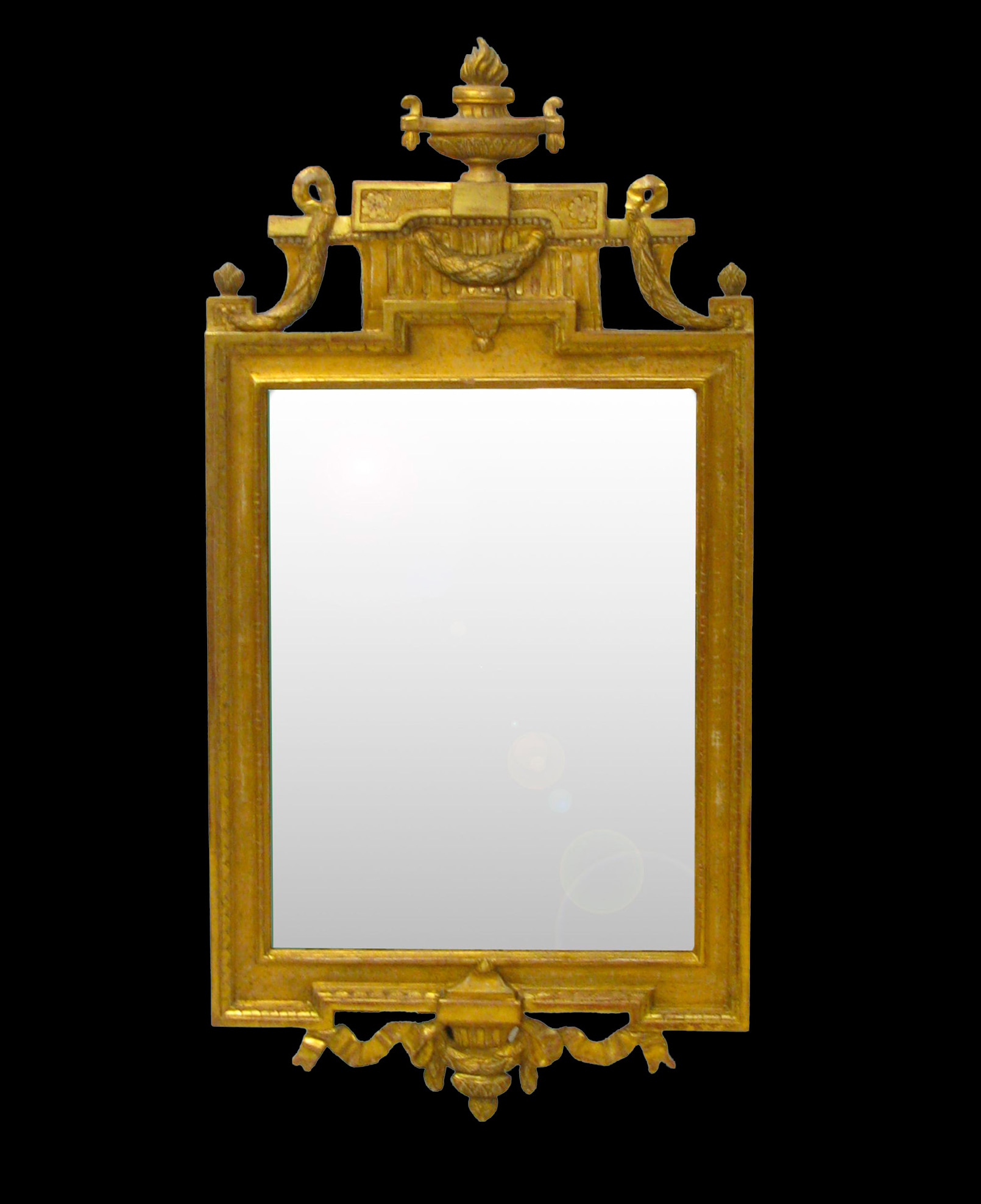 Espejo de talla dorado con oro fino Sueco, firmado y sellado. Fechado 1779 Carl Gustaf Fyrwald, 1774 – 1816