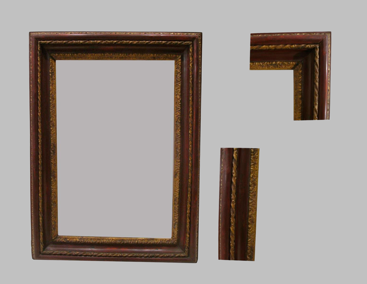 Marco de Talla con molduras vegetales doradas, franjas en color burdeos y una cenefa sogueada.