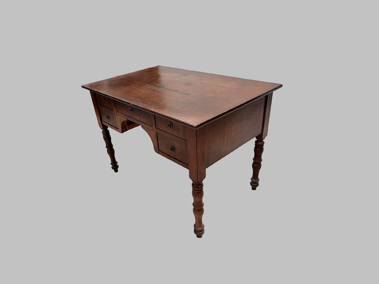 Mesa de despacho de estilo isabelino, realizada en caoba maciza, que destaca por su equilibrio, funcionalidad y refinamiento clásico.