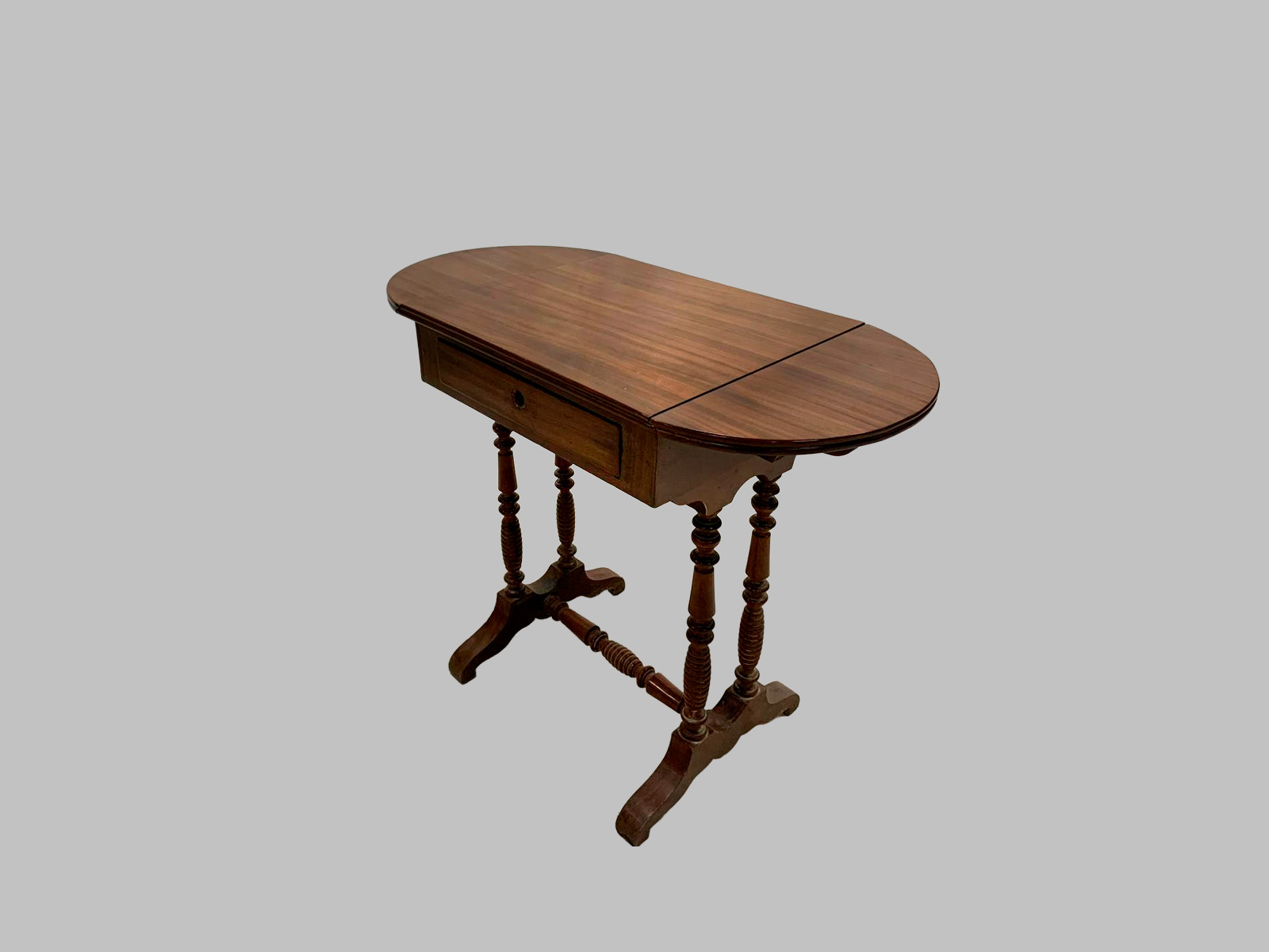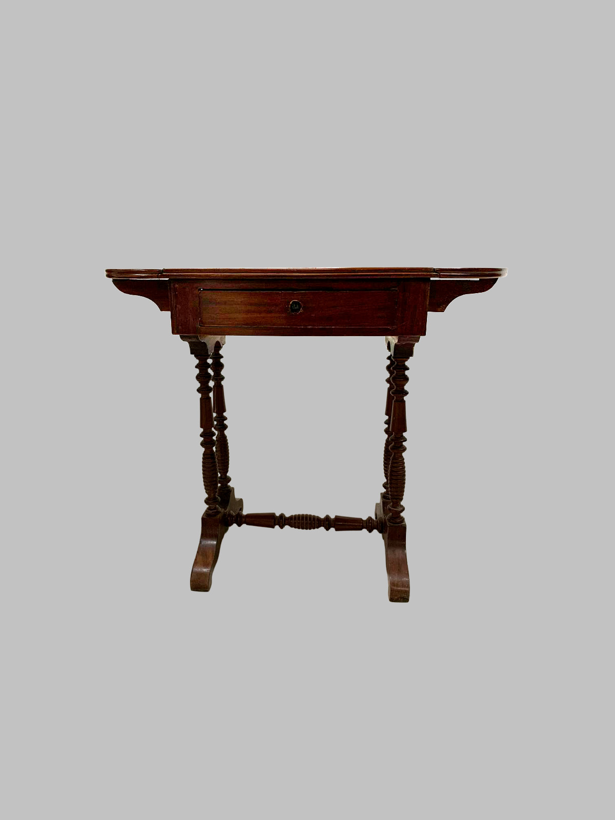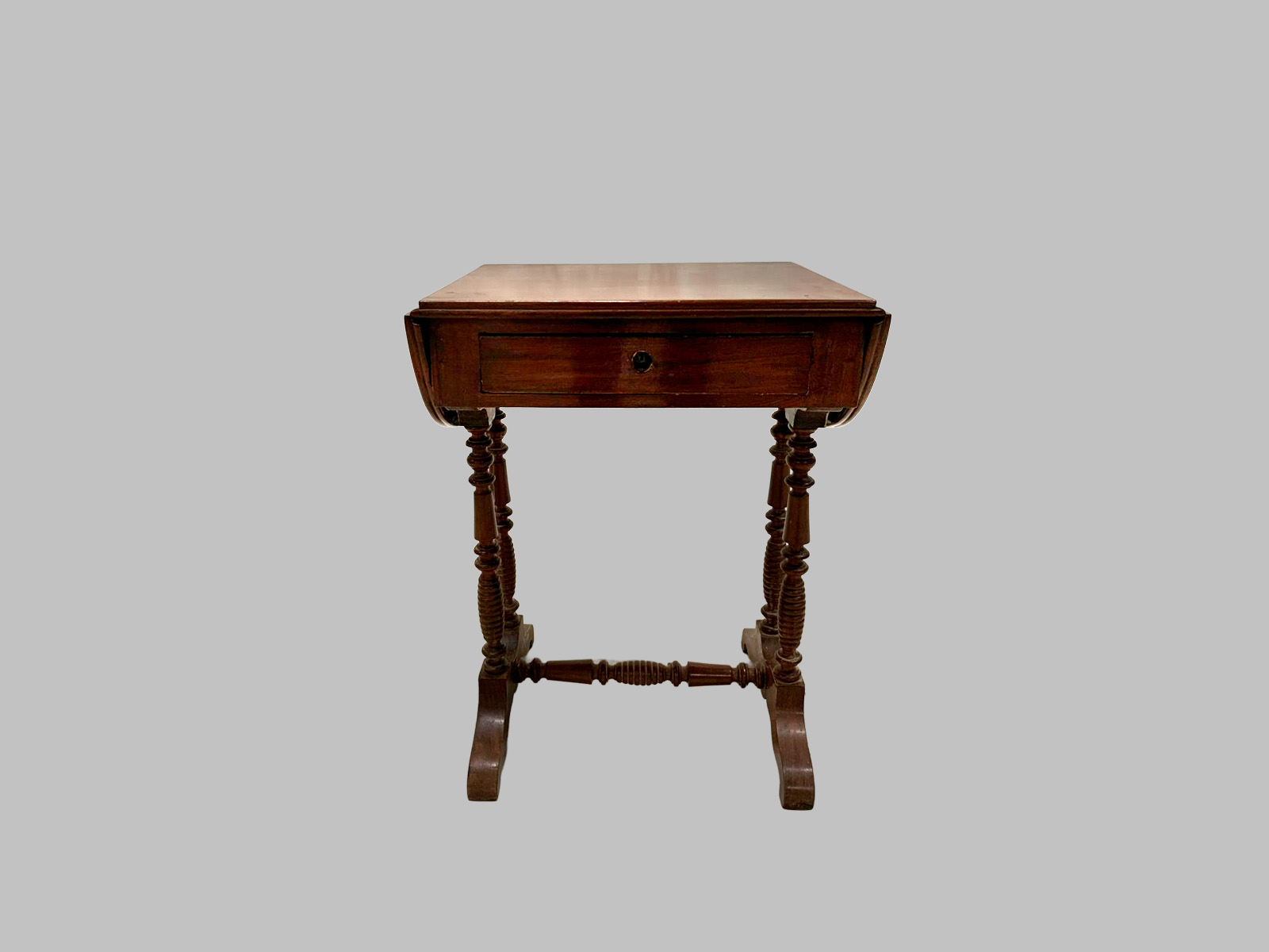 Mesita de Alas de Caoba con Cajón y Pies Torneados – Siglo XIX