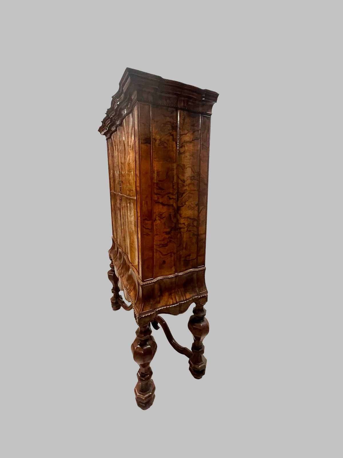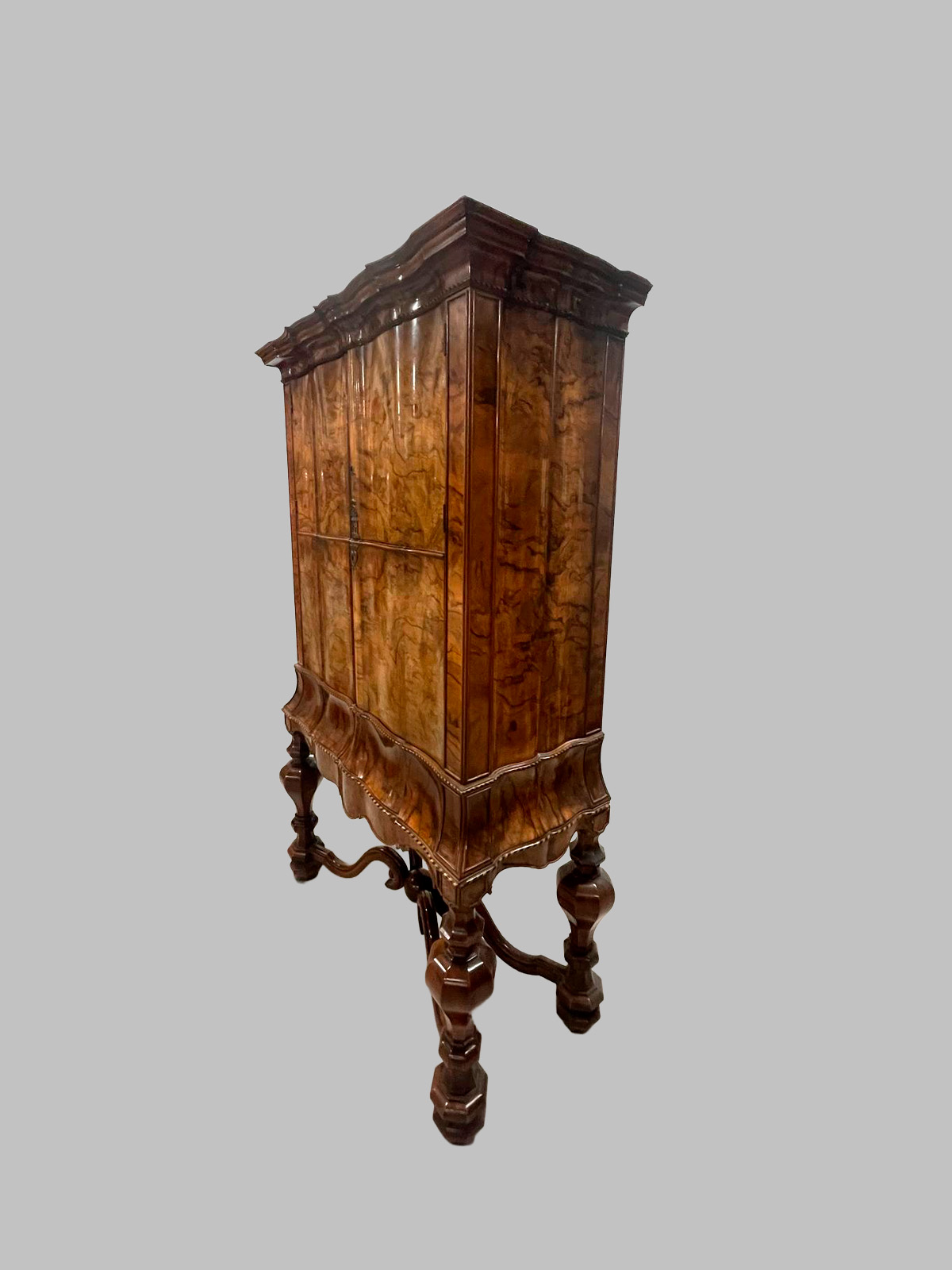 Mueble bar realizado en raíz de nogal, inspirado en el estilo Luis XIV, y datado en el siglo XX, que destaca por su lujo decorativo y su gran presencia escénica.