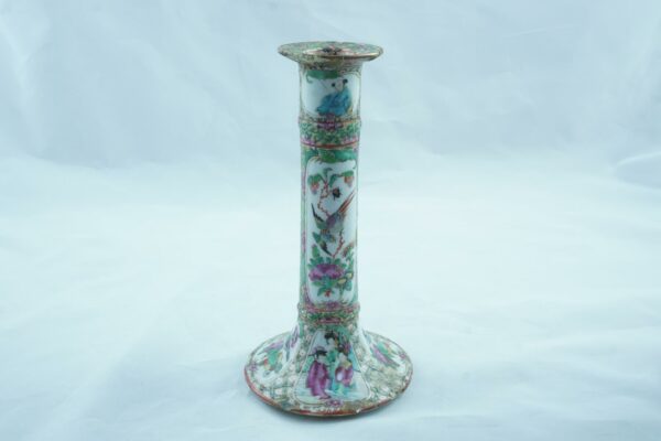Estos candeleros combinan funcionalidad y valor estético, convirtiéndose en piezas de colección únicas, ideales para amantes del arte oriental y la porcelana histórica. La delicadeza de la pintura y la calidad de la porcelana Cantón hacen de esta pareja un ejemplo sobresaliente de la artesanía china de exportación.