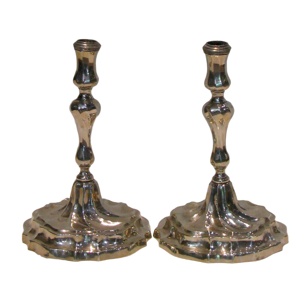 Pareja Candeleros de Plata de Ley, con base redonda y ondulada.