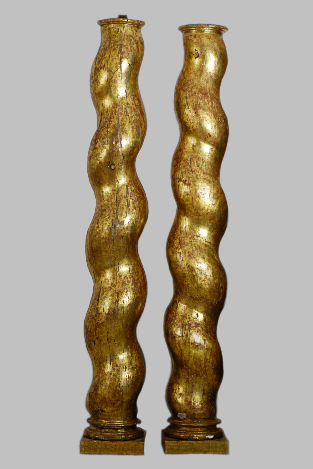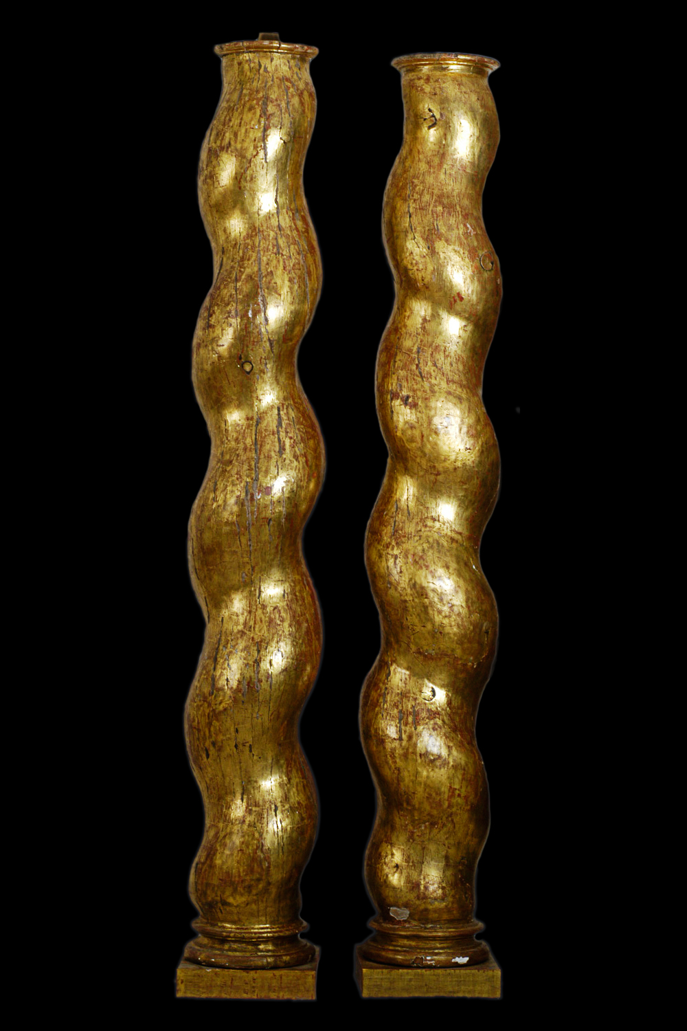 Pareja columnas salomónicas de talla y doradas con oro fino.