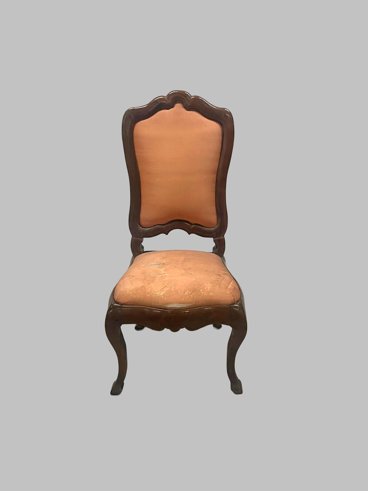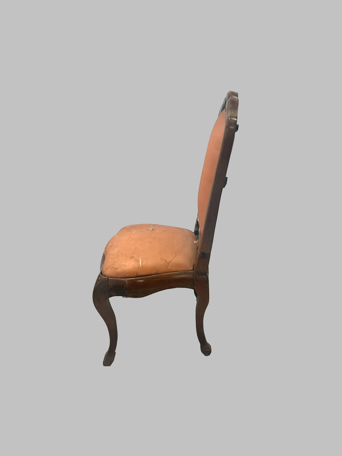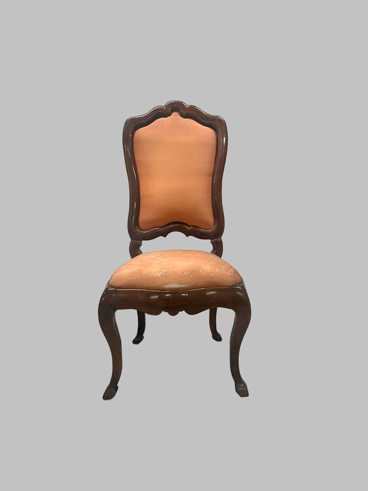 Las piezas presentan patas de cabra (cabriole), que aportan curvas suaves, dinamismo y una estética elegante, características del gusto neoclásico. La madera de nogal claro ofrece un tono cálido y luminoso, resaltando la belleza natural de la veta y aportando ligereza visual al conjunto.