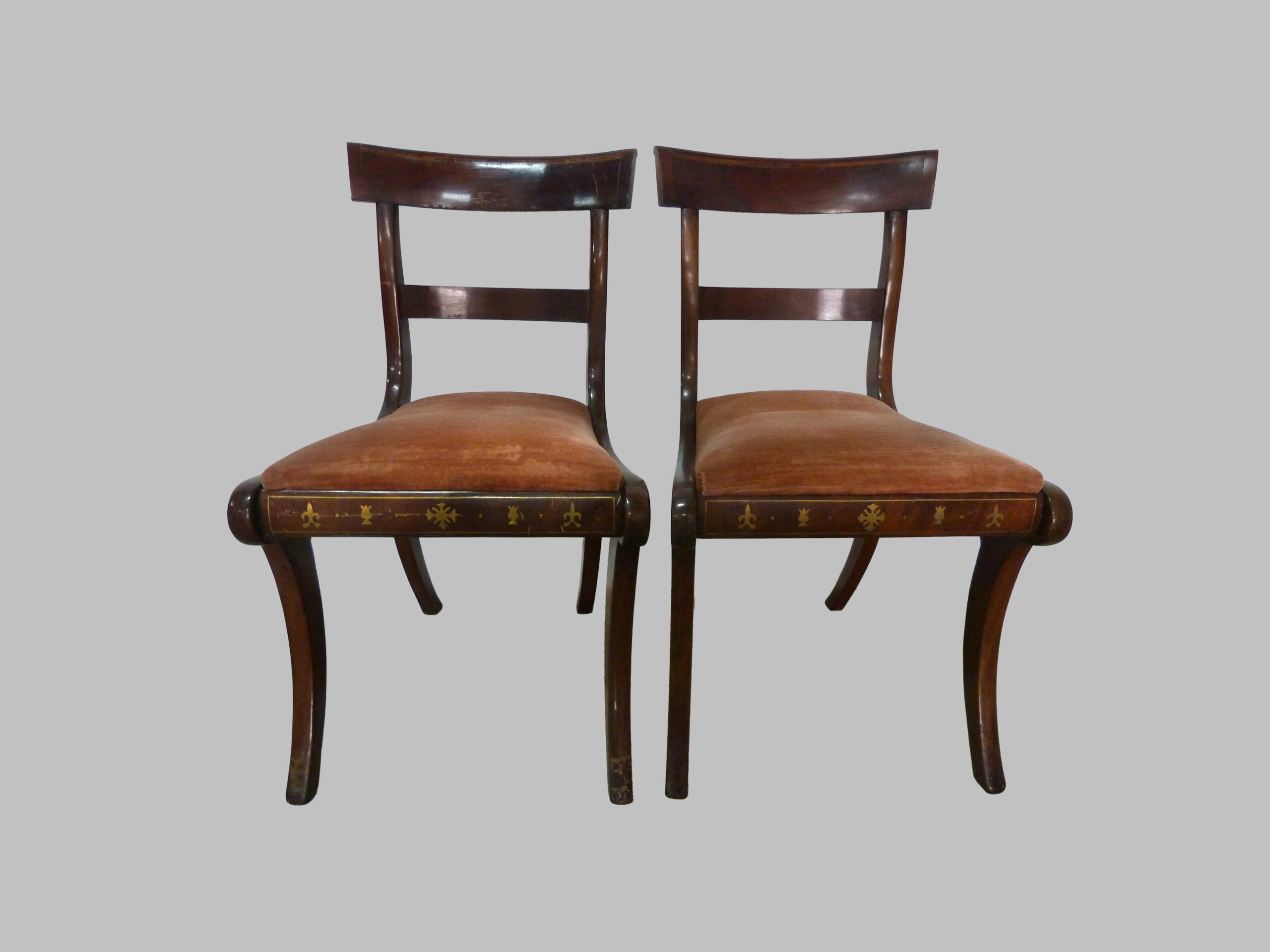 Pareja de Sillas Regency con Incrus. Latón y Limoncillo