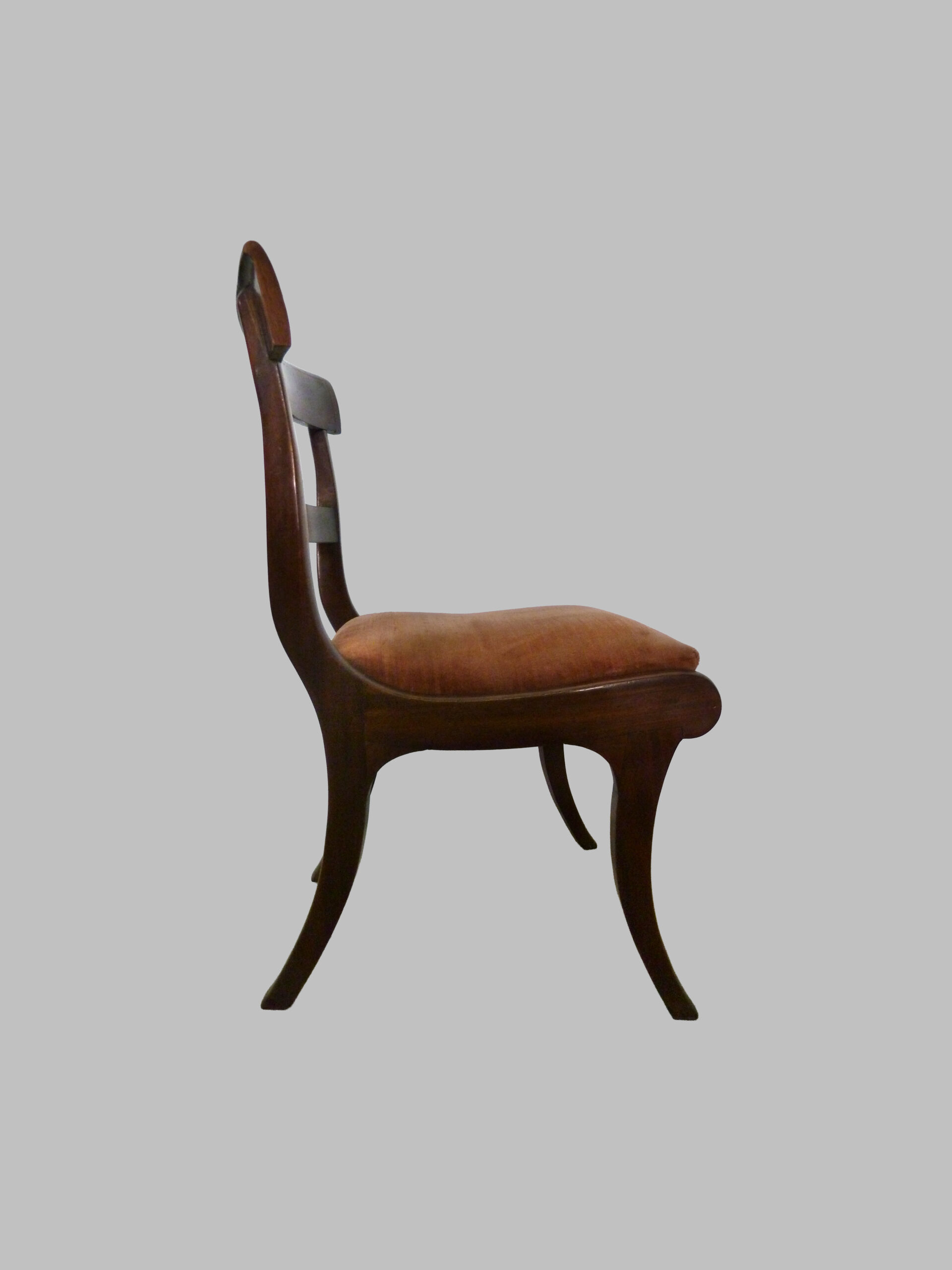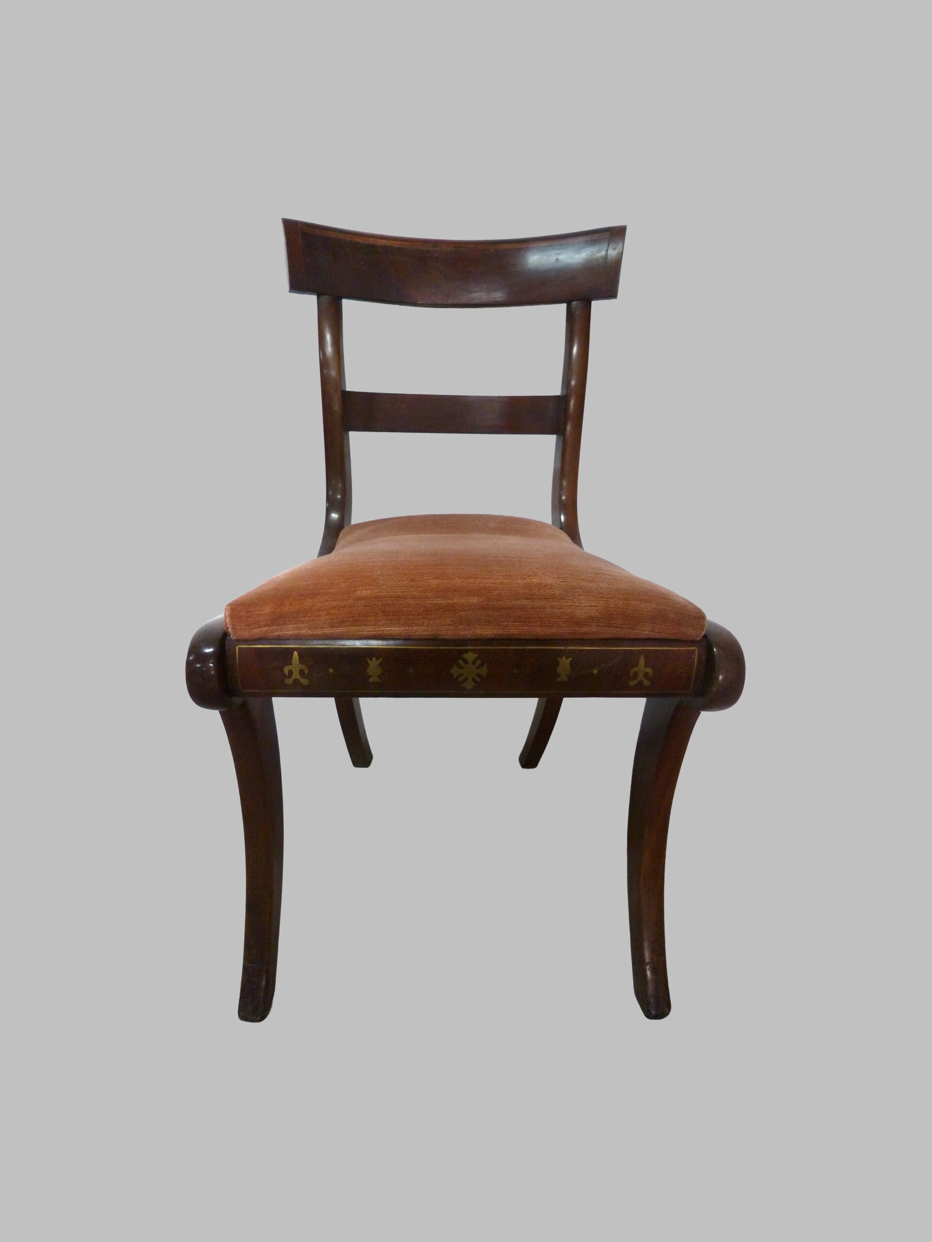Las sillas presentan un diseño sobrio y elegante, con respaldo y asiento proporcionados para comodidad, mientras que las incrustaciones de latón y limoncillo aportan detalle, contraste y sofisticación, realzando la belleza natural de la madera. Esta combinación convierte a las sillas en piezas decorativas y funcionales, perfectas para espacios clásicos y elegantes.