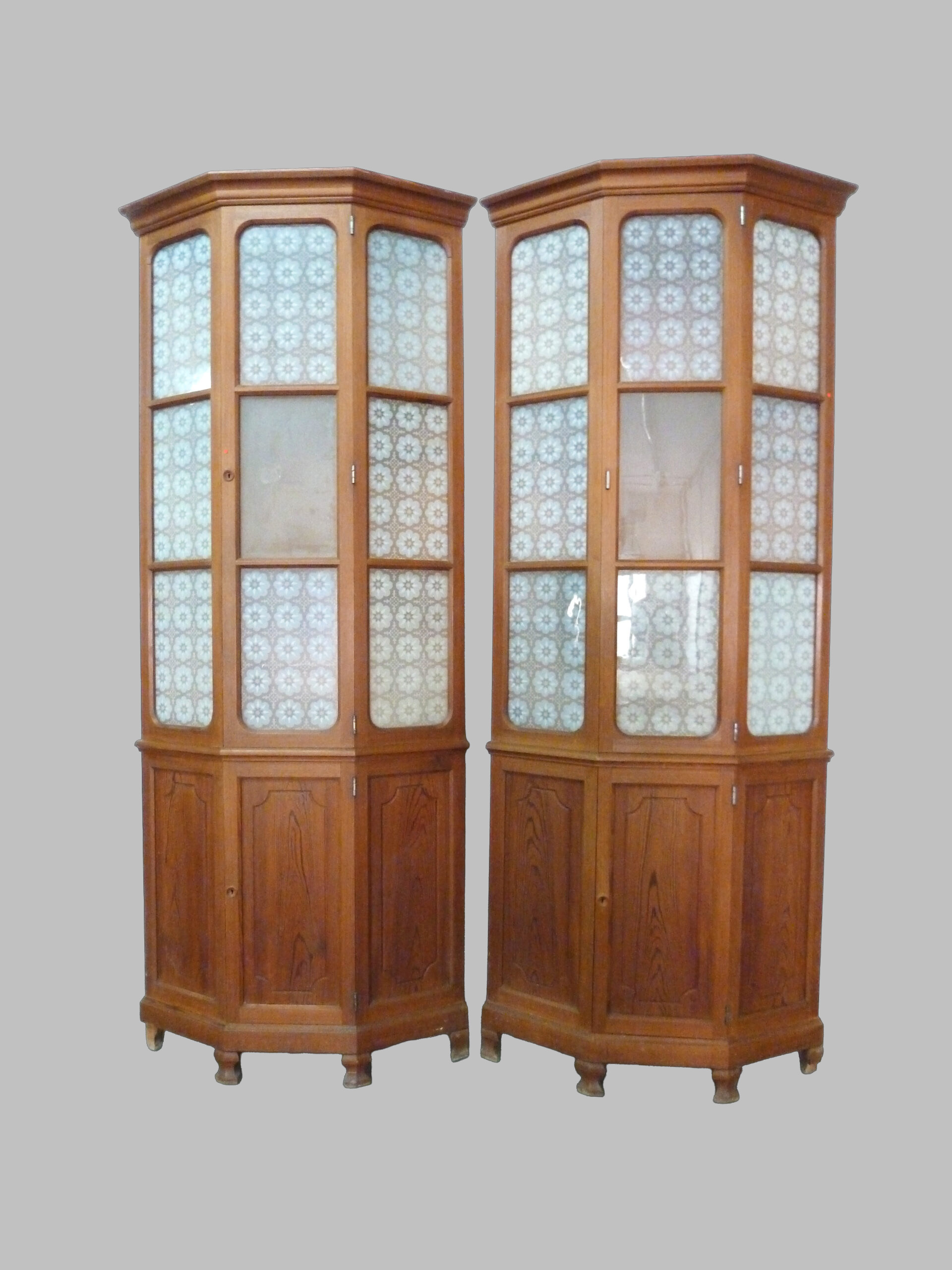 Pareja de Vitrinas Rinconeras de Pino Norte – Siglo XIX