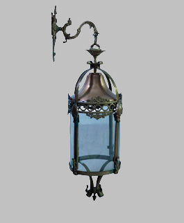 Pareja apliques farol de pared de latón y cristal, decorados con círculos, adorno floral y aplicaciones en forma de hojas.