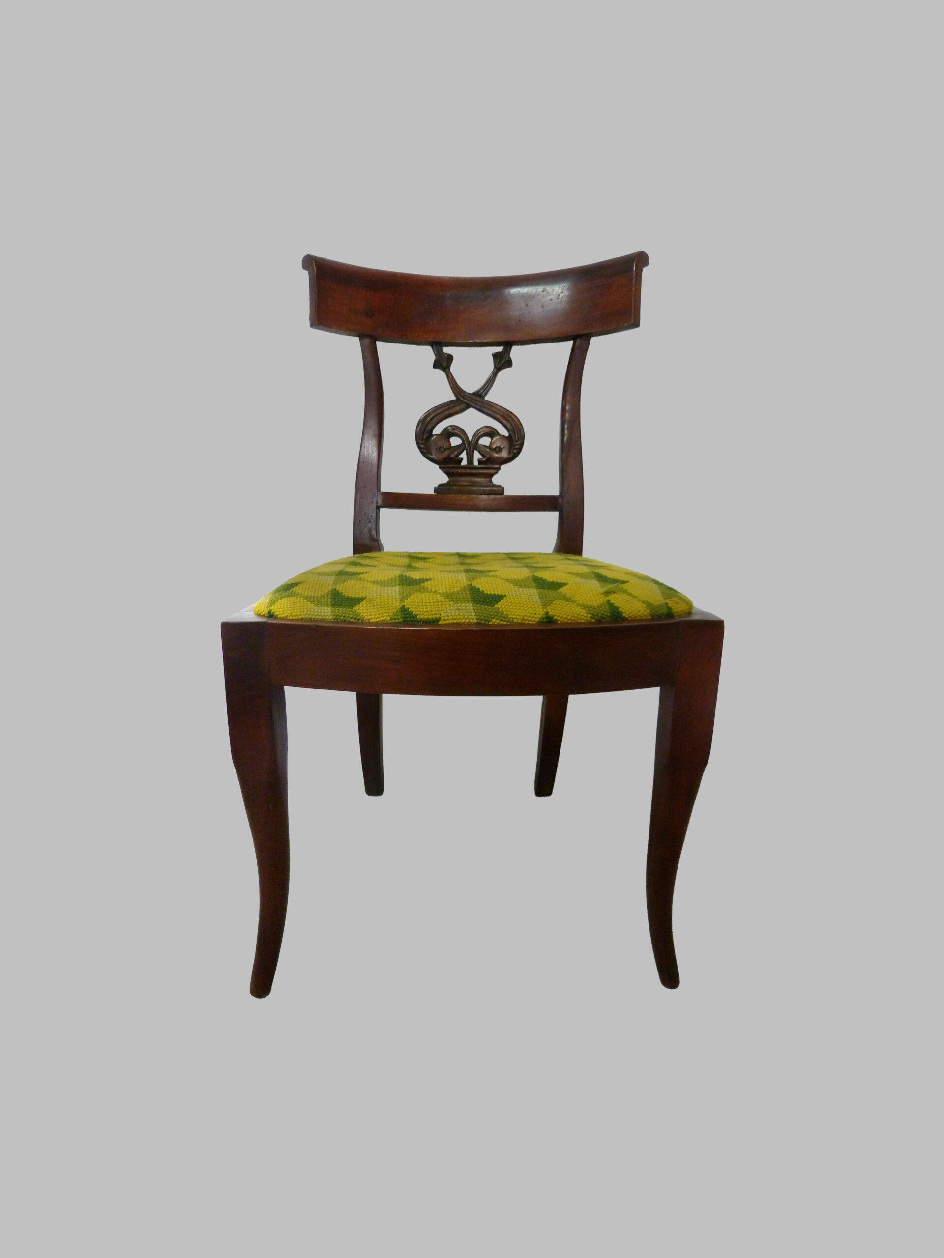 Silla imperio mallorquina, una pieza representativa del mobiliario tradicional de Mallorca que combina la influencia del estilo Imperio con la artesanía local.