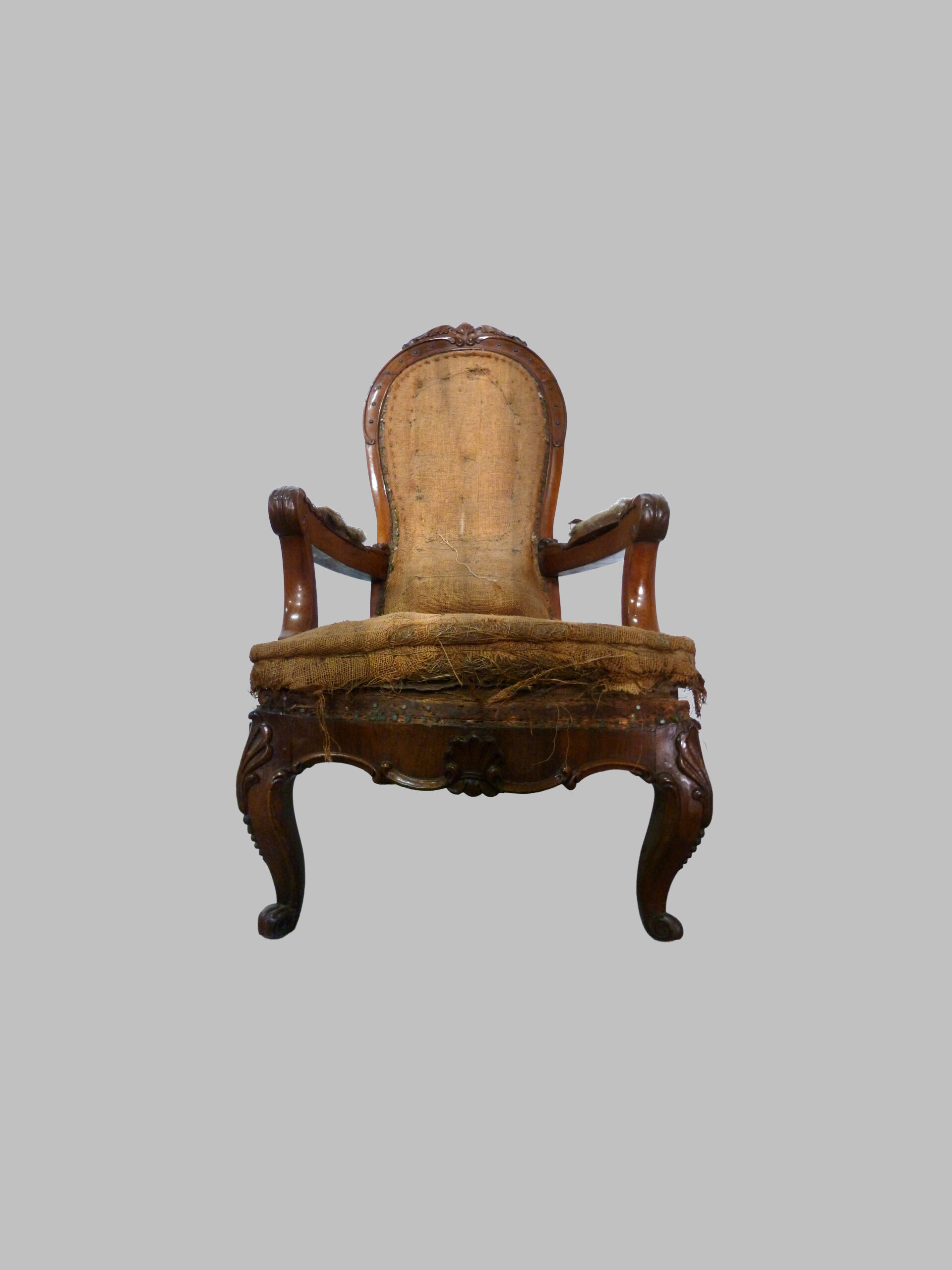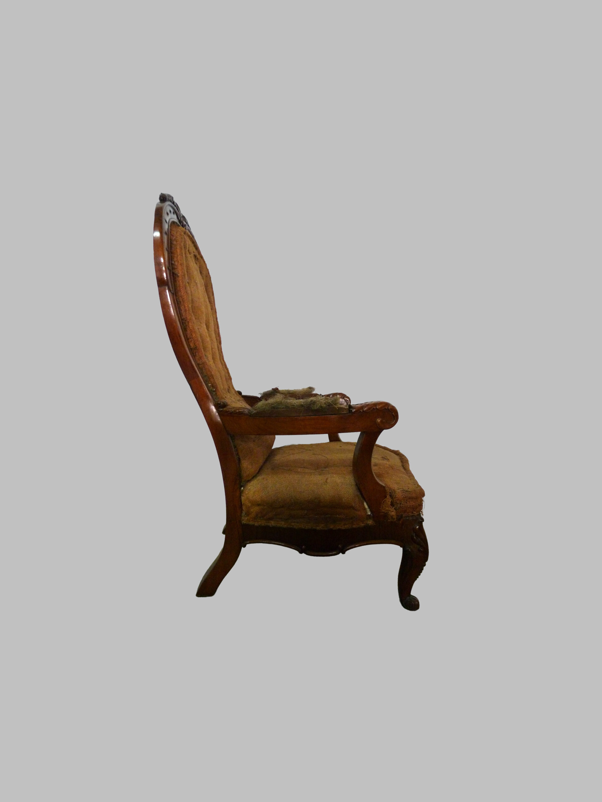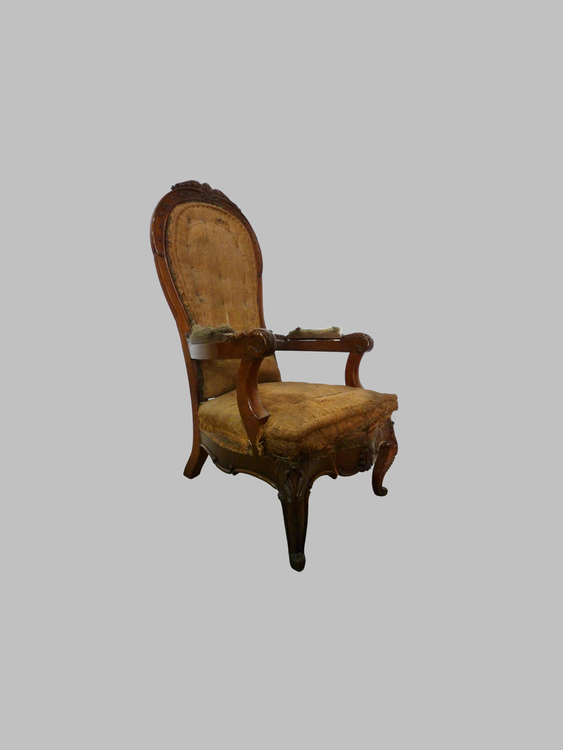 Sillón americano de caoba de época victoriana, una pieza representativa del mobiliario estadounidense del siglo XIX, donde la artesanía detallada se combina con la elegancia clásica.