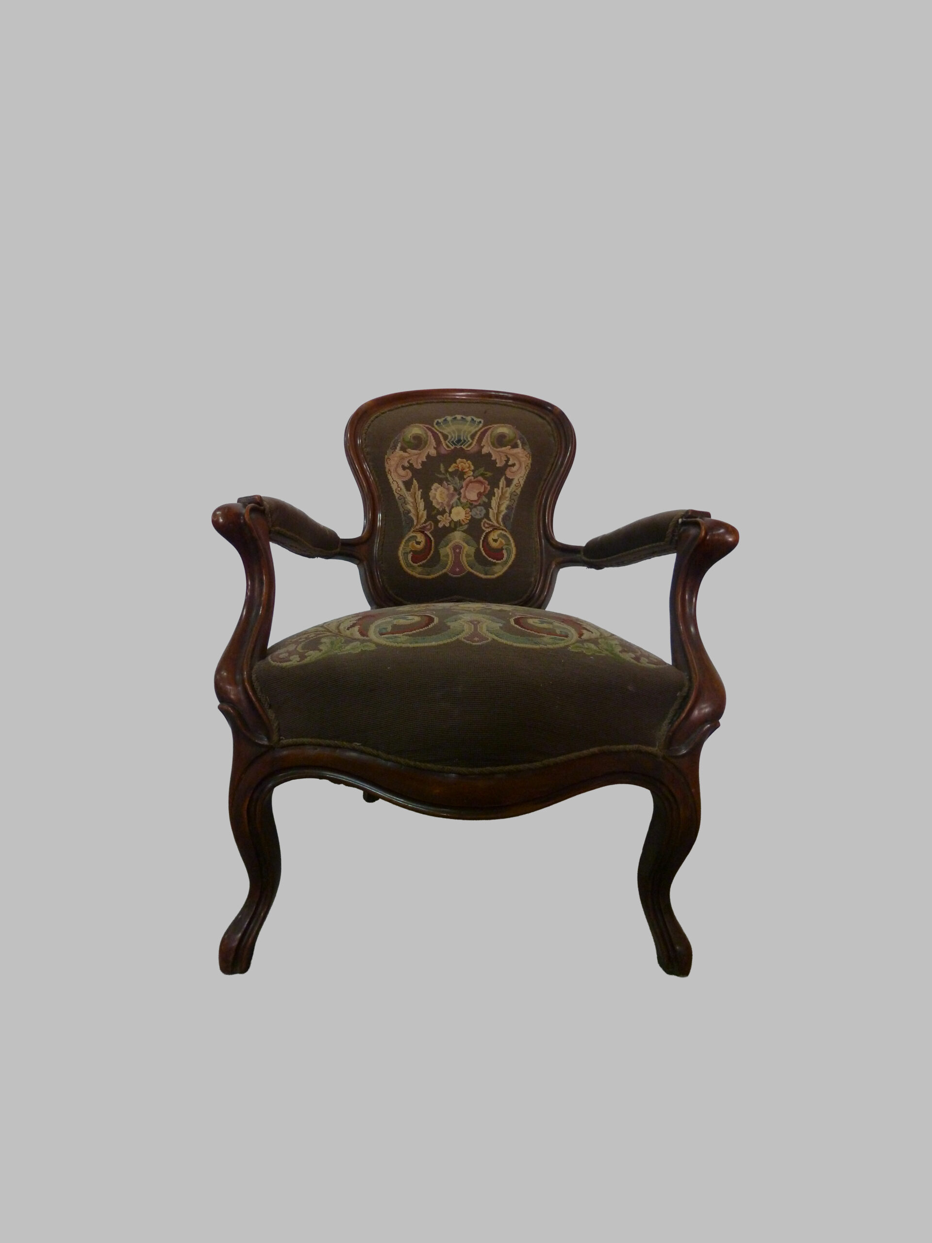Sillón Victoriano Tapizado en Petit Point – Siglo XIX