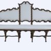 Sofá Barroco en madera de nogal con armazón ondulado, diez patas cabriolé, respaldo «in crescendo» y siete aplicaciones en bronce ( cinco en frontal y uno a cada lateral) y tapizado en color blanco con cenefa también blanca.